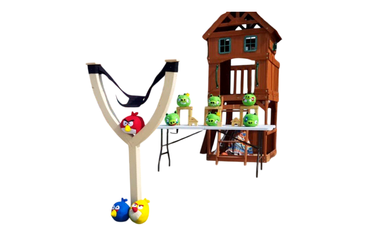 Bring the fun of Angry Birds to life with this exciting slingshot game! Players can launch plush birds using the giant slingshot to knock down pig targets stacked on wooden-style blocks. Perfect for kids’ parties, carnivals, and themed events, this game guarantees hours of entertainment and friendly competition.