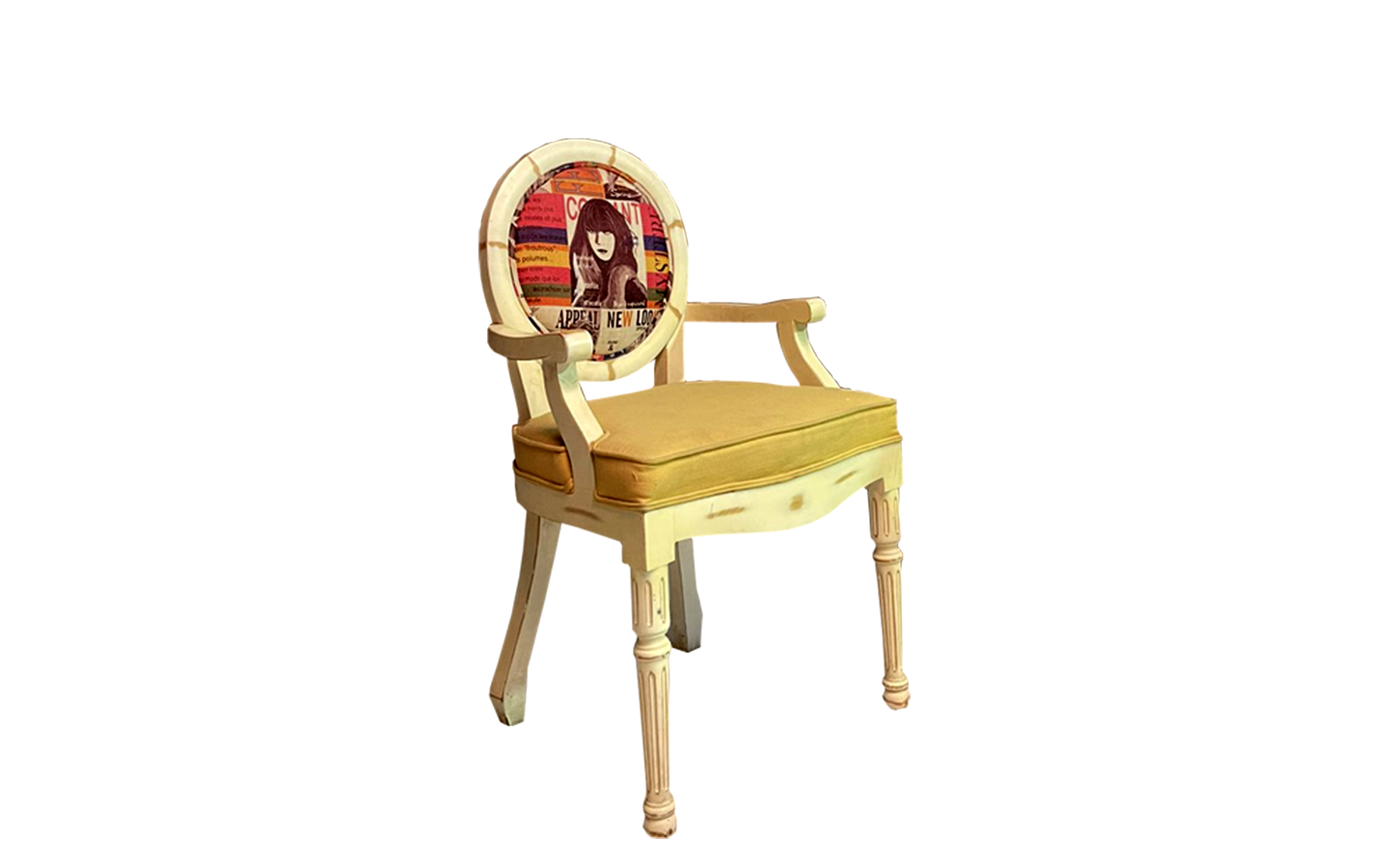 Antique Designed Dining Chair with Arm - Yellow Seat