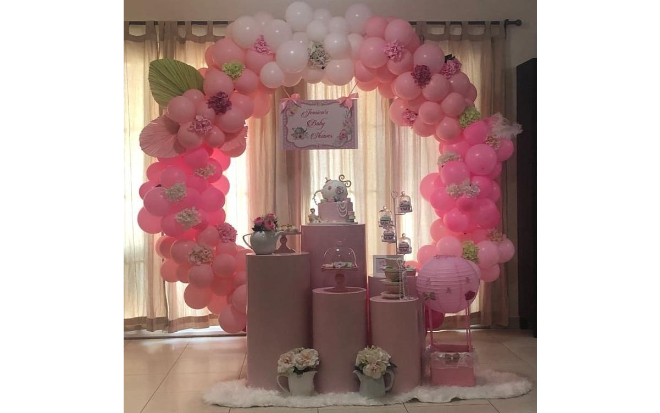 Bring charm to your party with this basic birthday decor package which includes decor tastefully adorning the space with a Ring Backdrop and balloon decoration and furniture to create a celebratory ambiance for your party.