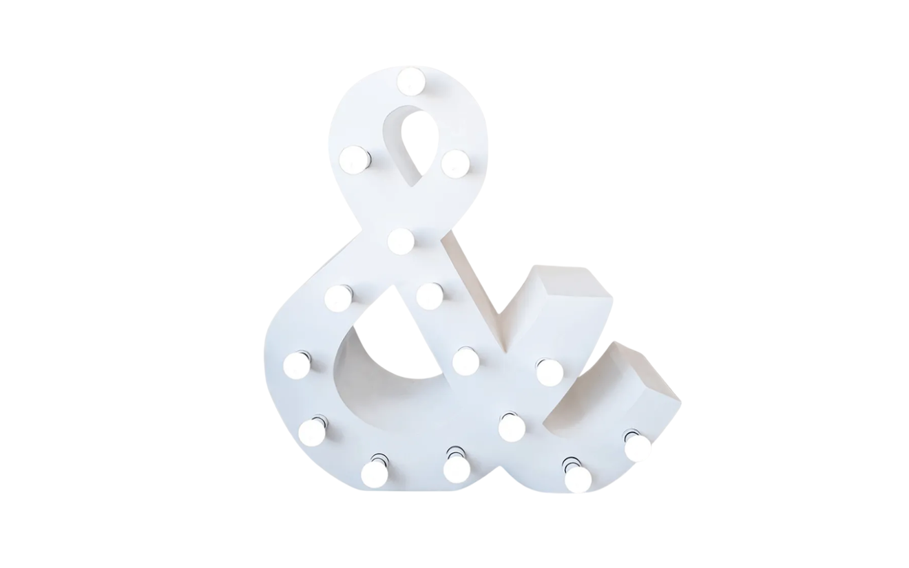 A range of LED marquee signs available for rent! They come with warm-white LED bulbs, and if you're looking to add a dash of colour to match your event's theme, simply inquire with your dedicated booking agent about our selection of vibrant coloured bulb options. At Pinch Me Rentals, we're dedicated to elevating the atmosphere of your event and helping you craft unforgettable moments.