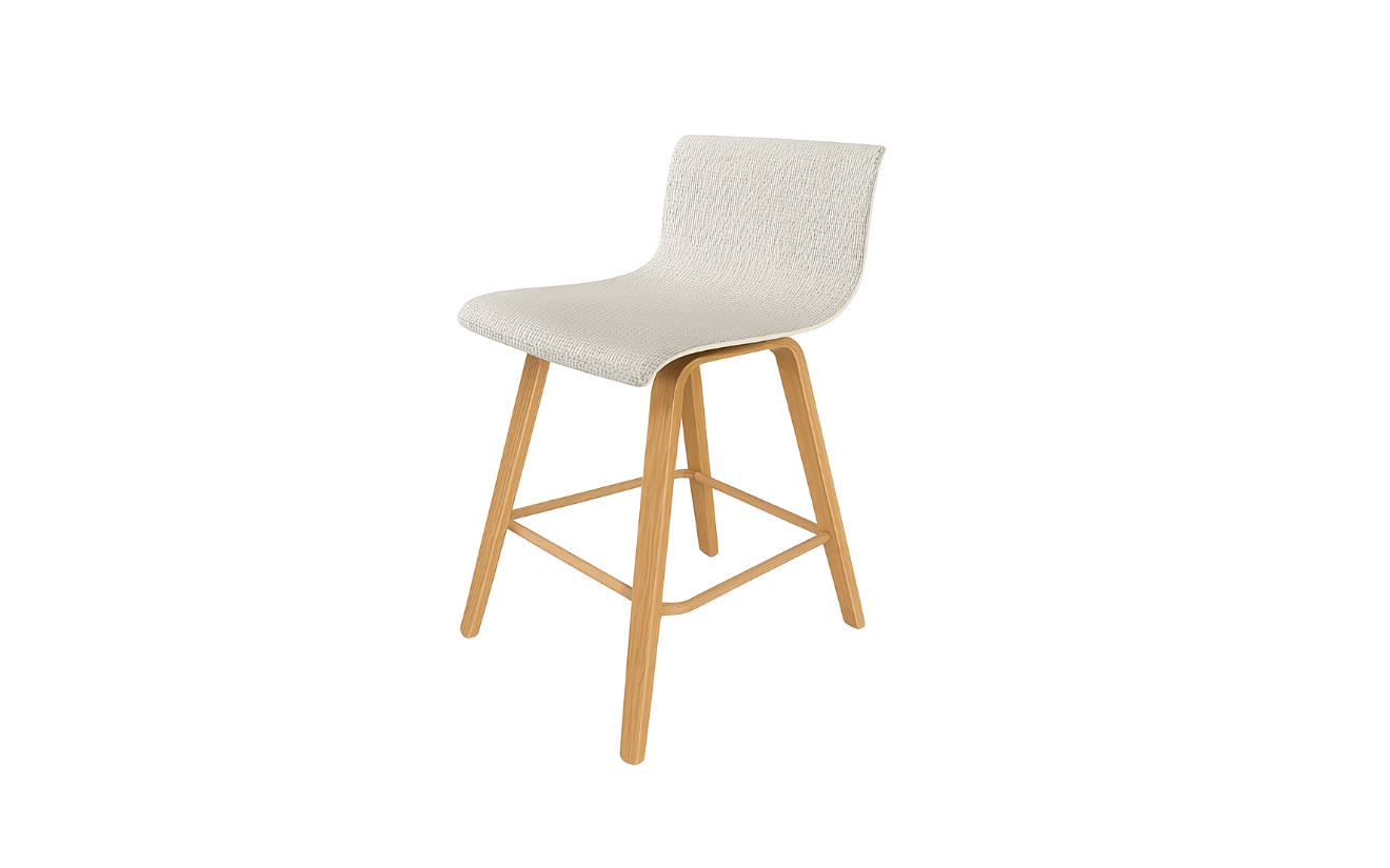 The Booth Bar Chair combines comfort with modern elegance. Featuring a gently curved backrest and seat with a woven textured finish, it ensures both style and ergonomic support. The sturdy wooden legs with a supportive footrest make it perfect for bars, kitchen counters, and dining spaces.
