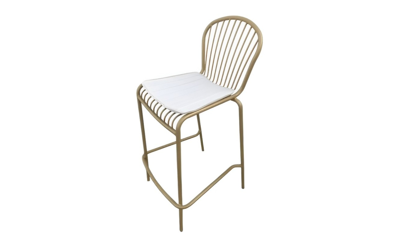 Corset Bar Stool Champagne Gold with White Seat Pad
