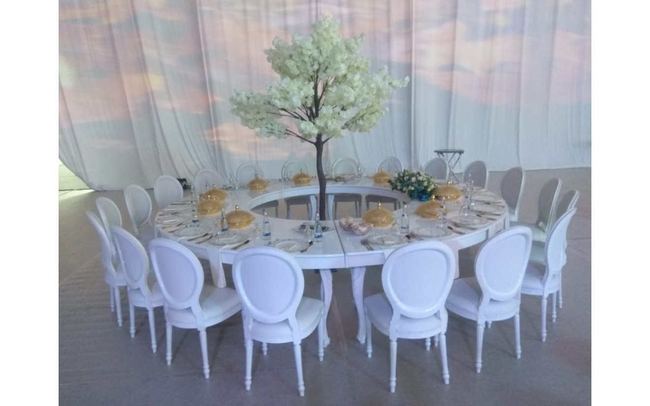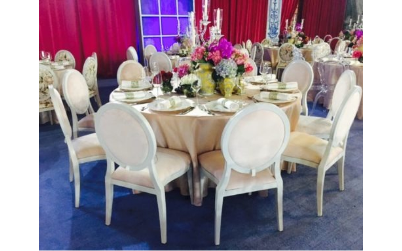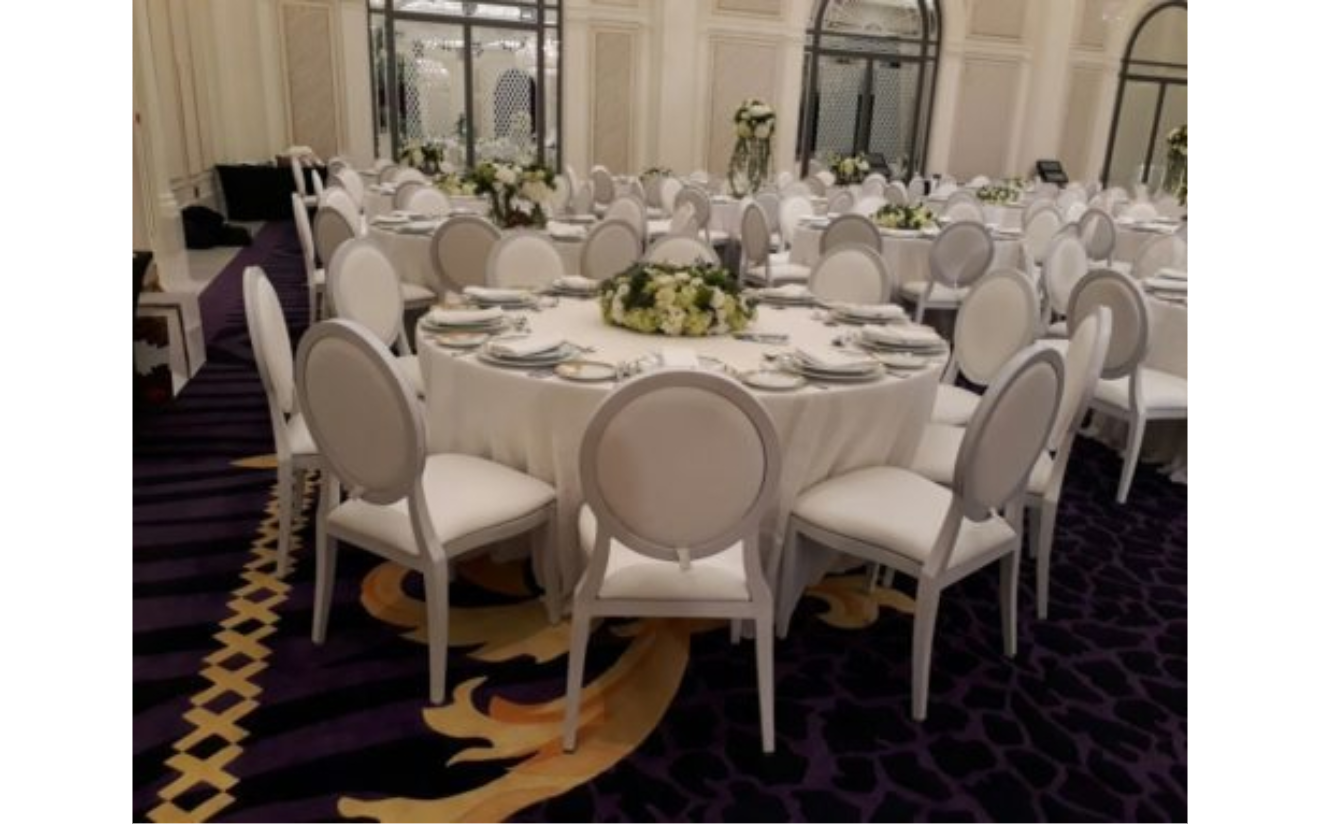 The Dior Seating Package offers an elegant dining setup, perfect for large gatherings. It includes a stylish round table and chairs, making it ideal for both indoor and outdoor events. Designed to comfortably accommodate big groups, this package provides a sophisticated and functional seating solution for any occasion.
