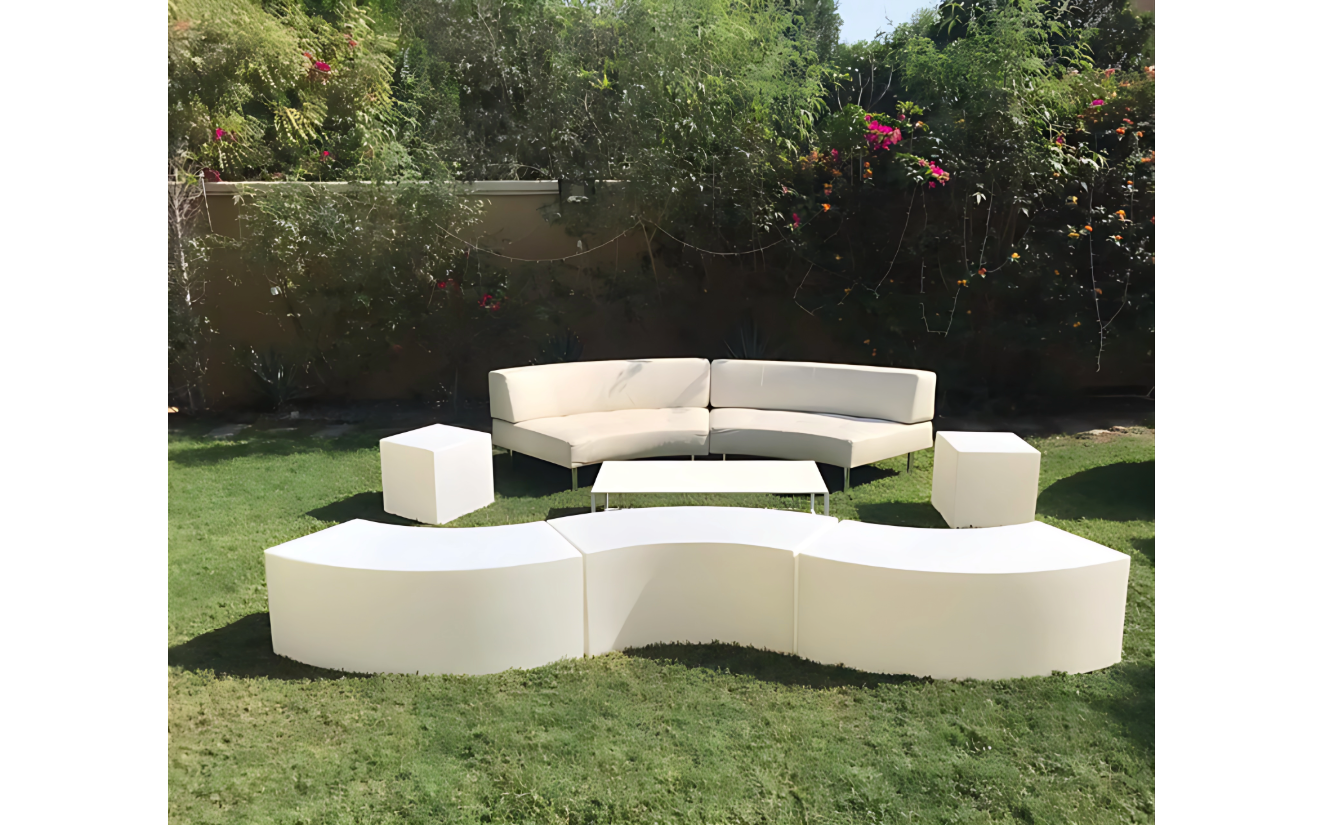 Made of a high quality vinyl material with the look and feel of leather this modular system gives you the freedom to let your imagination run wild to create an endless configuration that suits your individual space. Start with the curved or straight Ottomans and then add low seat backs to create appealing curved chairs, sofas or large serpentine and round configurations.