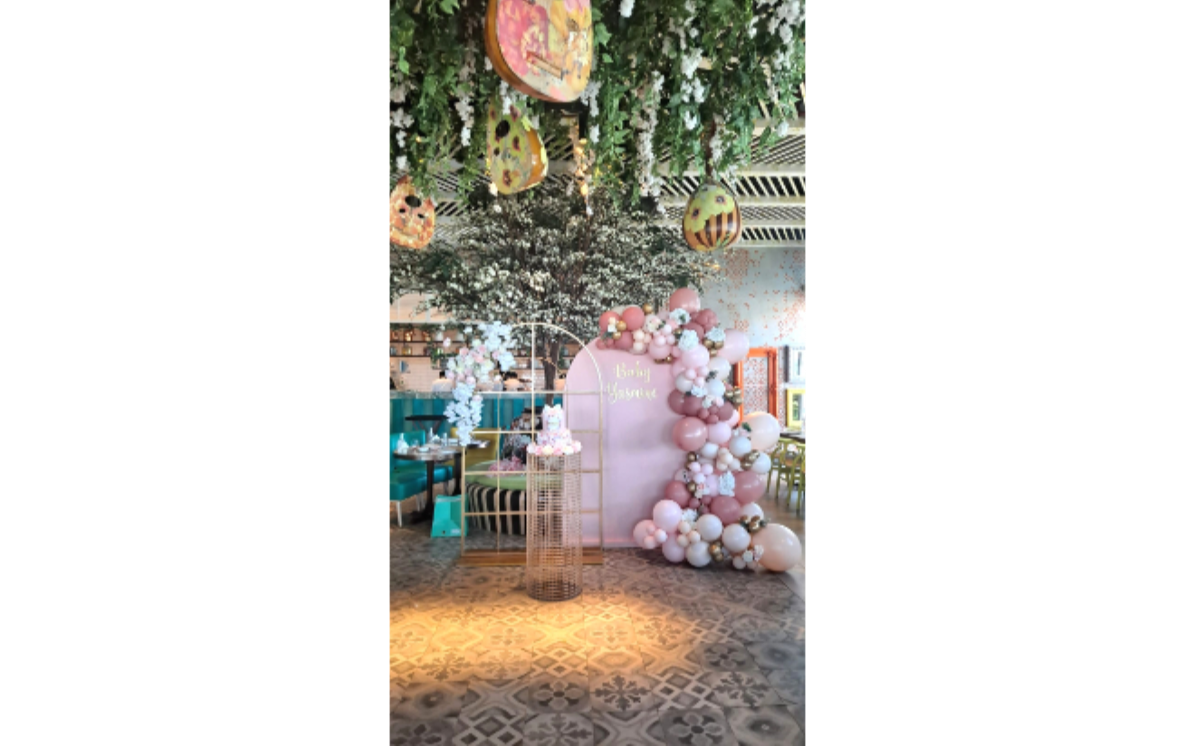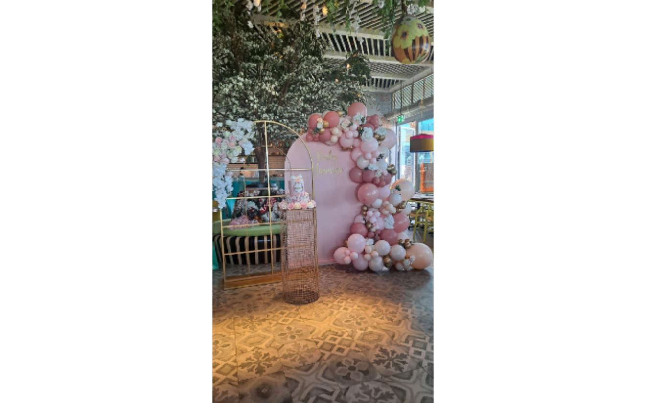 Balloon Garland | Flower Arrangement | Cake Plinth