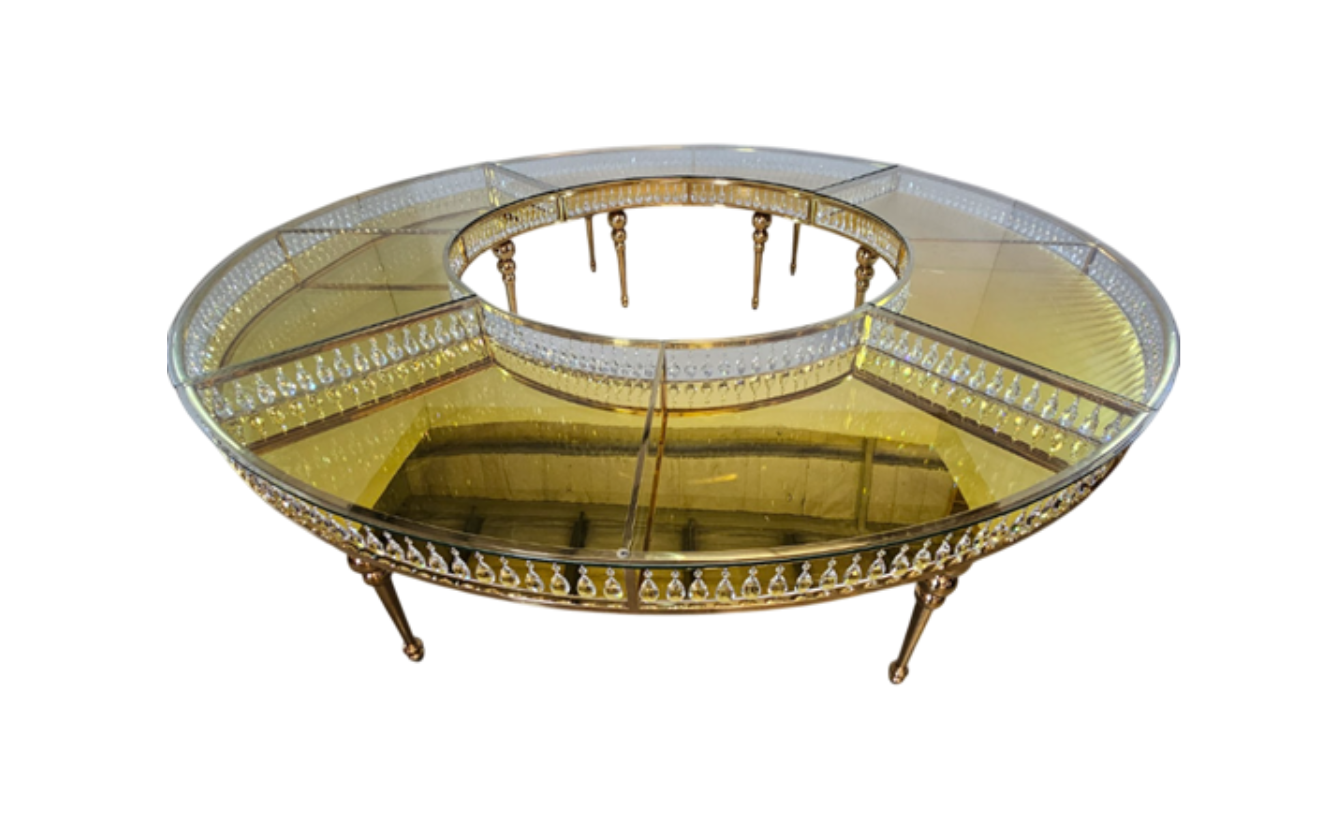 The Gold Moon Dining Table features a stunning round design with a modern metallic base and a smooth tabletop finish. Its full-round shape encourages conversation and creates a stylish focal point for any dining or event setup. Perfect for elegant gatherings, weddings, and corporate functions.