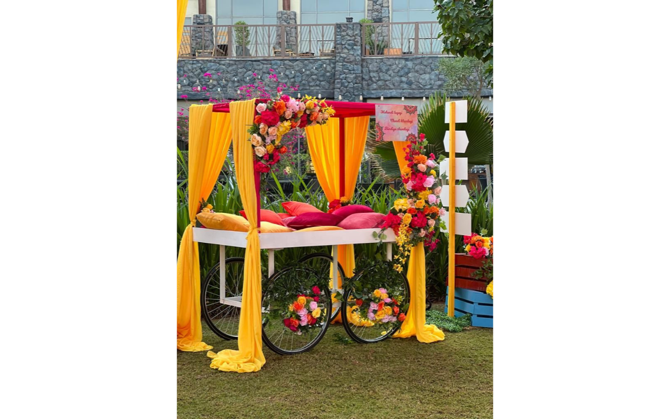 Your haldi ceremony will be enhanced by our beautiful Draping Decor Setup. Our arrangement, with its pops of colour and timeless elegance, creates a captivating environment fit for a joyful celebration. With our Haldi setup package, you can make sure that every detail of this unique celebration is well planned and captured.