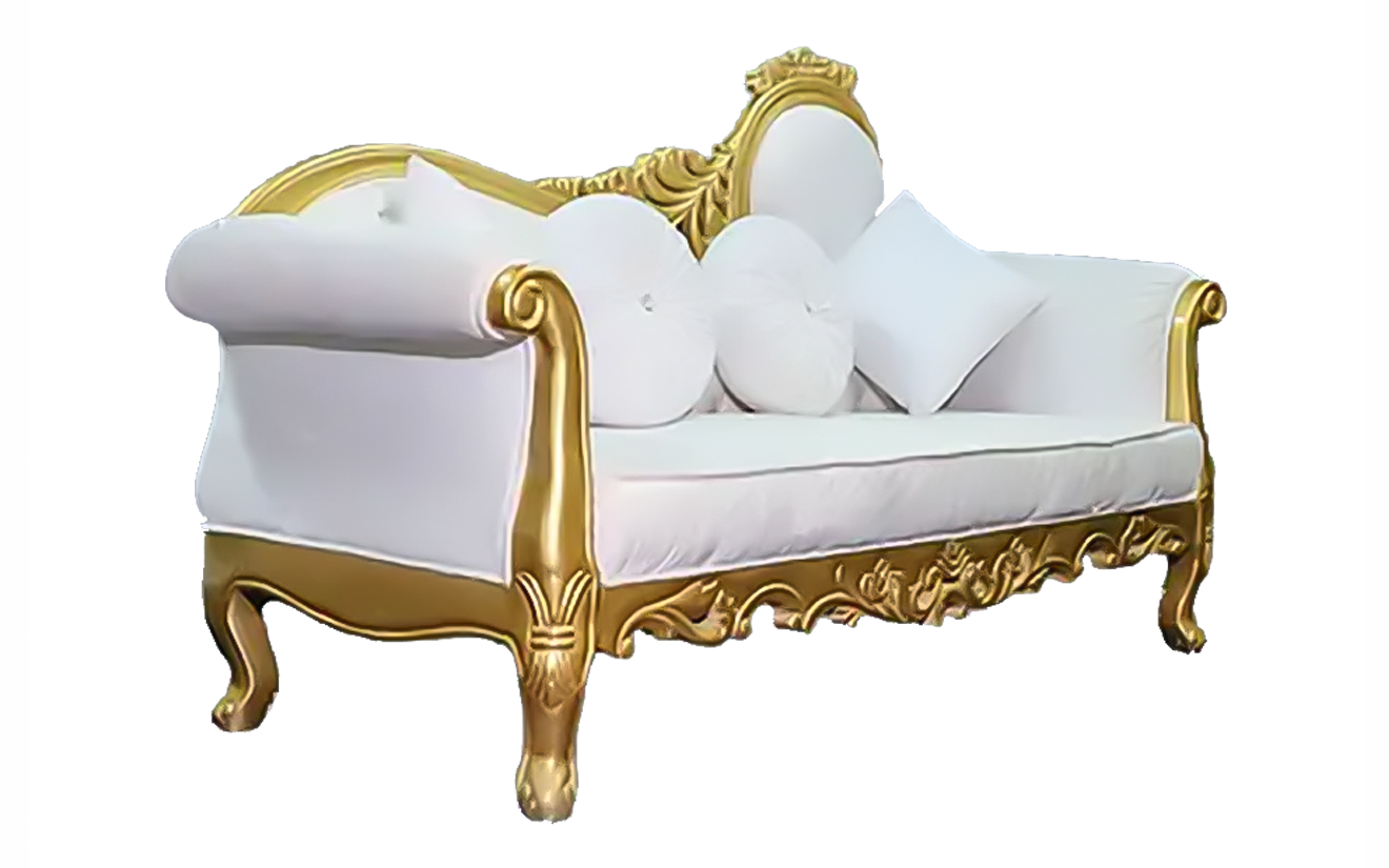 The Imperial Bridal Sofa is a stunning two-seater in white with elegant gold lining. Perfect for exhibitions, VIP events, and weddings, it enhances both indoor and outdoor settings with its luxurious design.