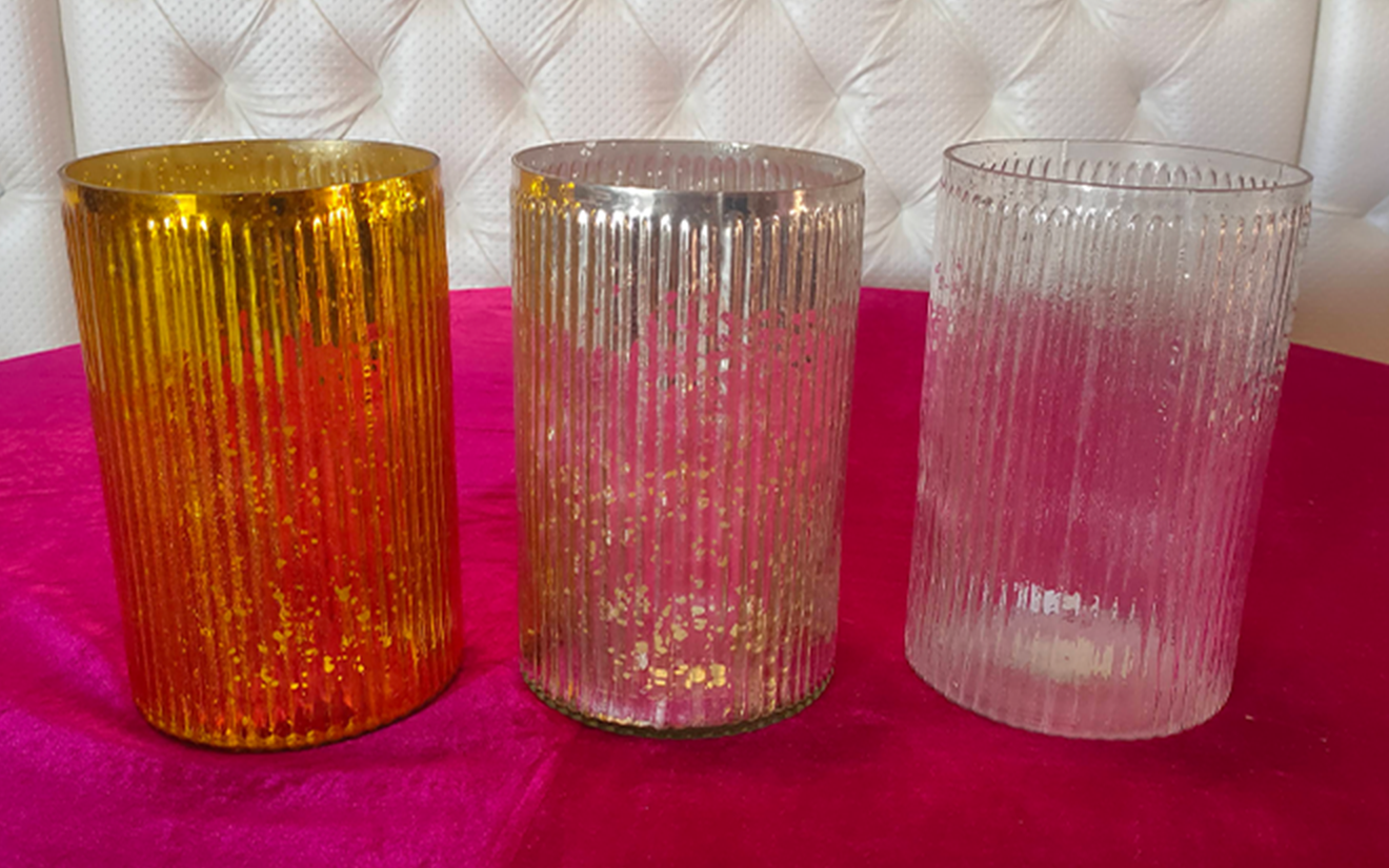 A stylish set of decorative jars featuring a sleek vertical line design with shimmering finishes. Each jar adds a touch of elegance and charm, perfect for modern and festive décor.