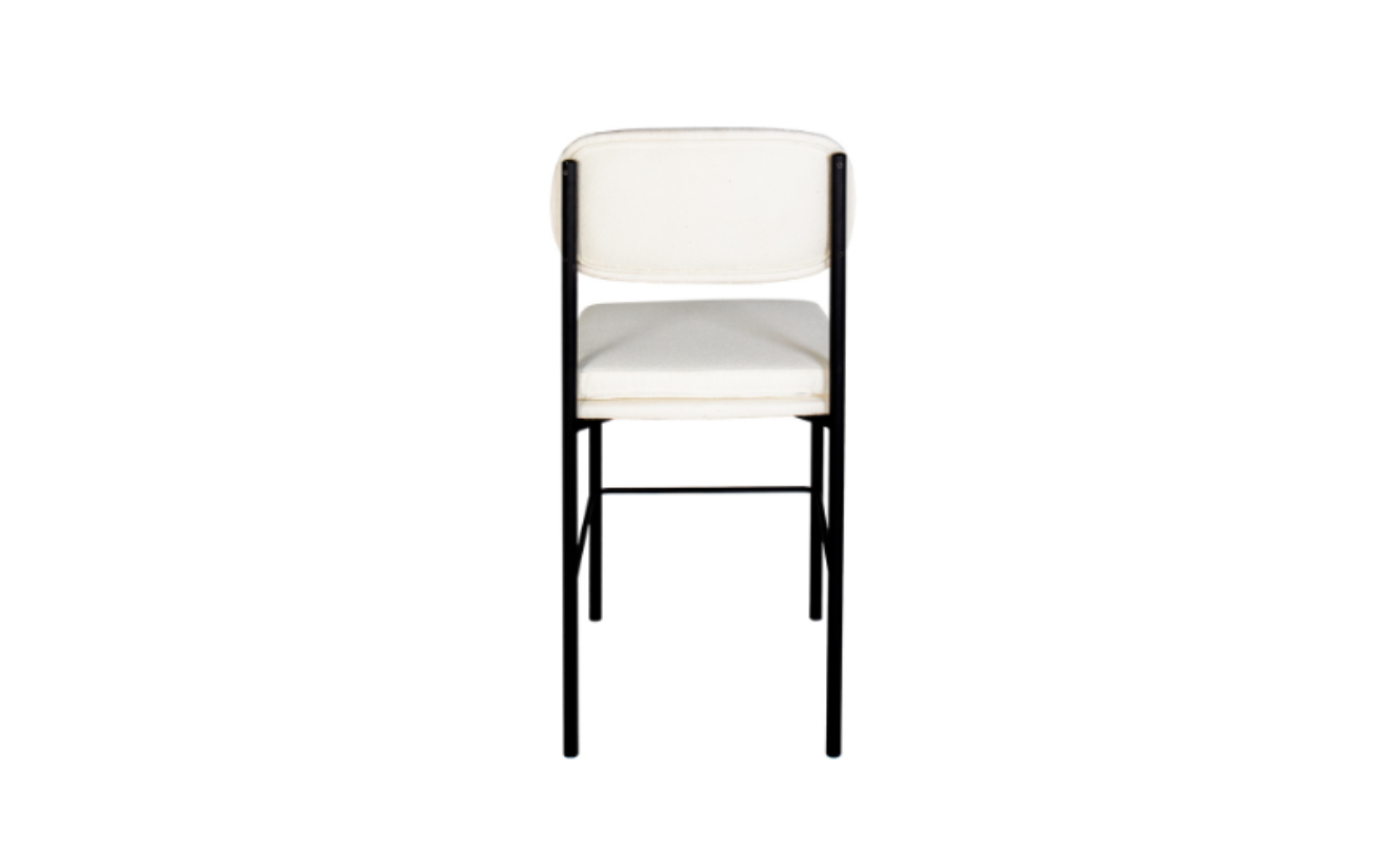 The Jeddah Bar Stool combines modern elegance with comfort. Featuring a cushioned off-white seat and backrest upholstered in premium fabric, it is supported by a sleek black metal frame. Its minimalist design makes it a stylish seating choice for bars, kitchens, or dining counters.