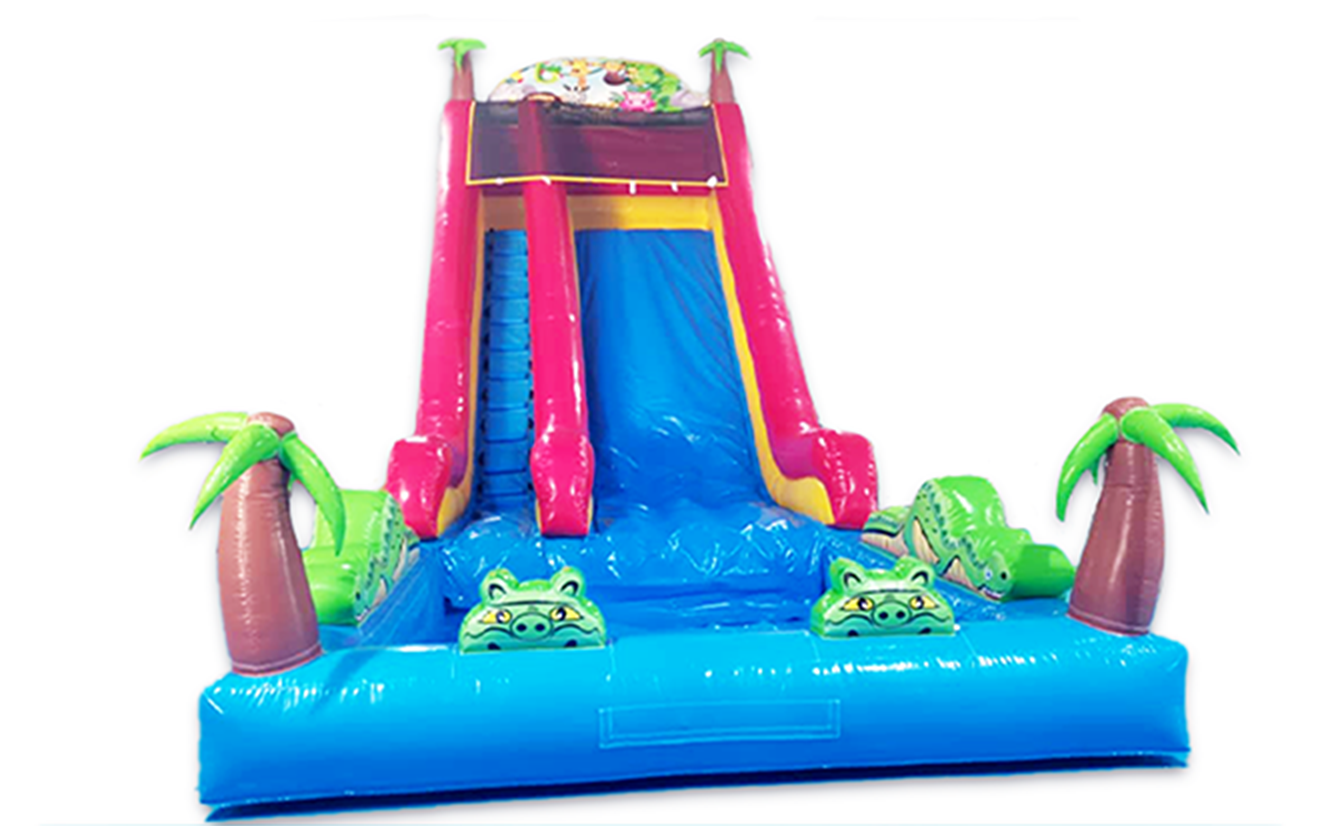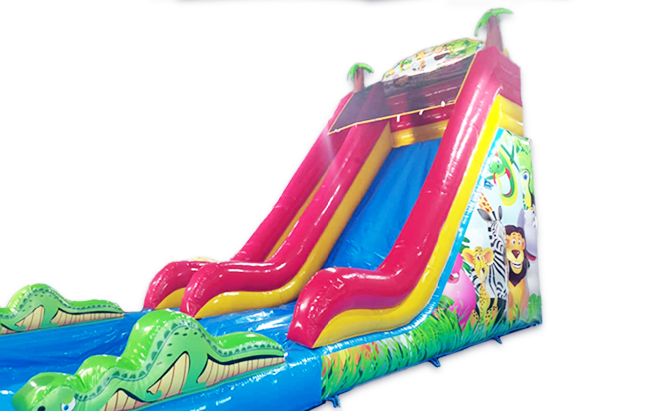 Rent the inflatable slide called Jungle Animals Water Fun. This inflatable is ideal for kid-friendly events and a fun way to keep them occupied.