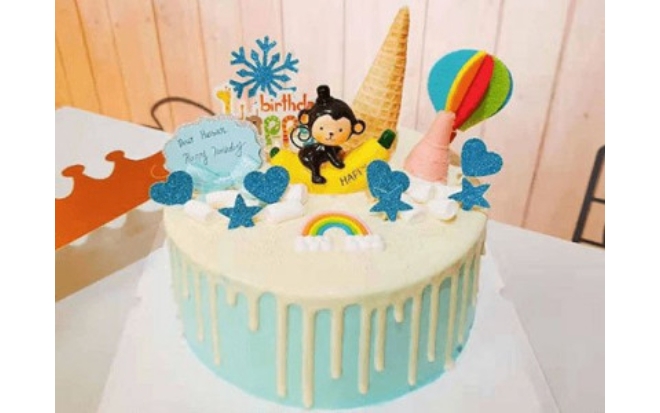 A delicious customized sponge cake with French butter cream available in different sizes! Seasonal fruits in the cake are optional.