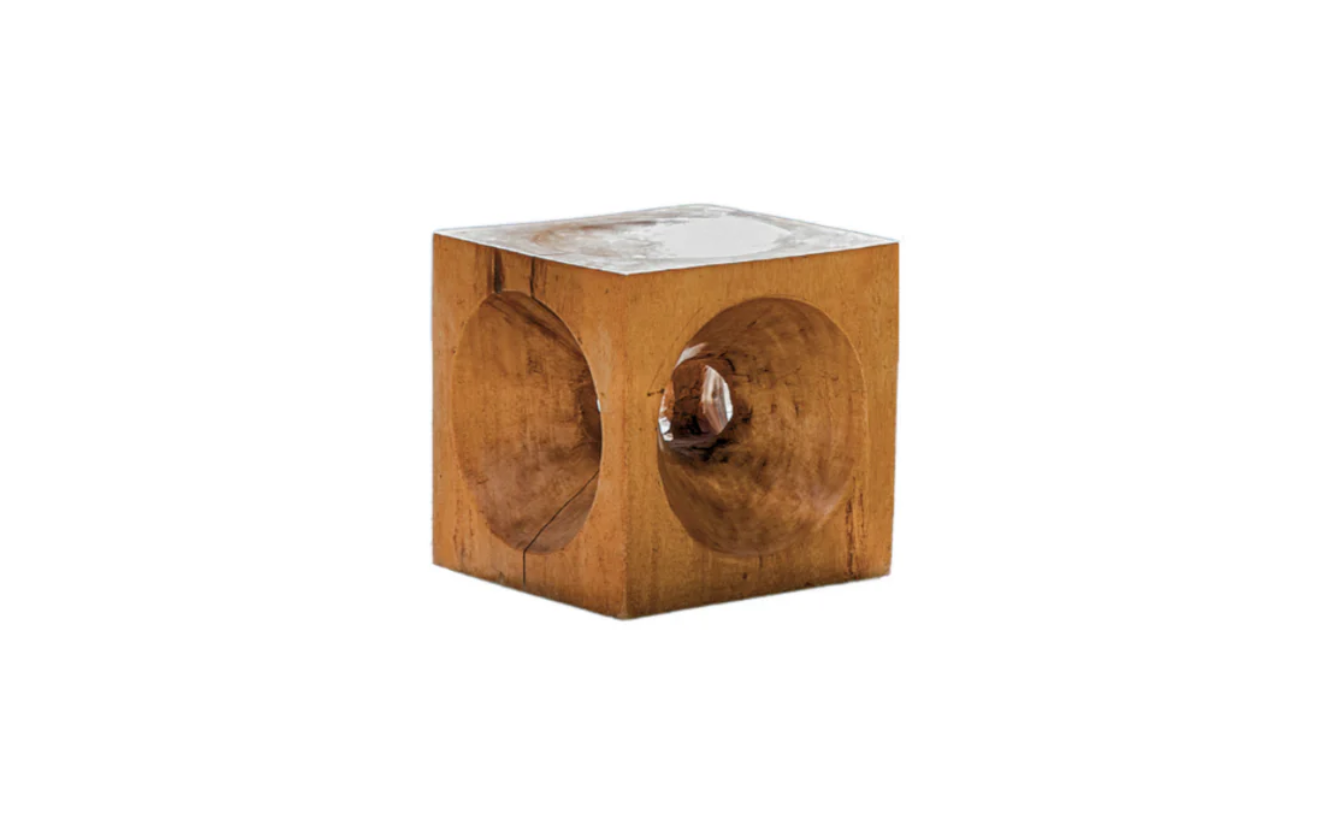 The Oculus side table is a uniquely designed, with artistic holes in all sides of the table. Made out of solid suar wood with beautiful naturally formed cracks, the Oculus is stable, durable and an eye-catcher!
