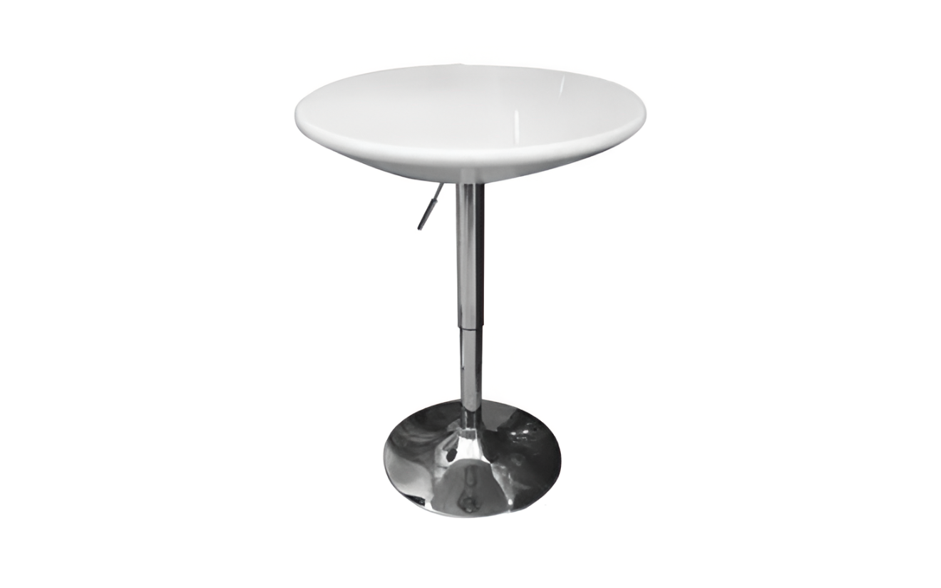 The Pamplona Cocktail Table features a sleek round acrylic top with a modern chrome-finished pedestal base. Its adjustable height function makes it versatile for both casual gatherings and elegant event setups. Stylish and functional, this table is perfect for cocktail parties, receptions, and lounge areas.