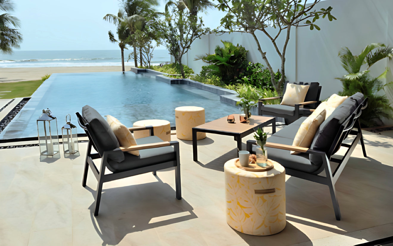 The Panama outdoor lounge range is sleek and contemporary. Informal yet stylish, it can be rented as a set or as individual pieces.