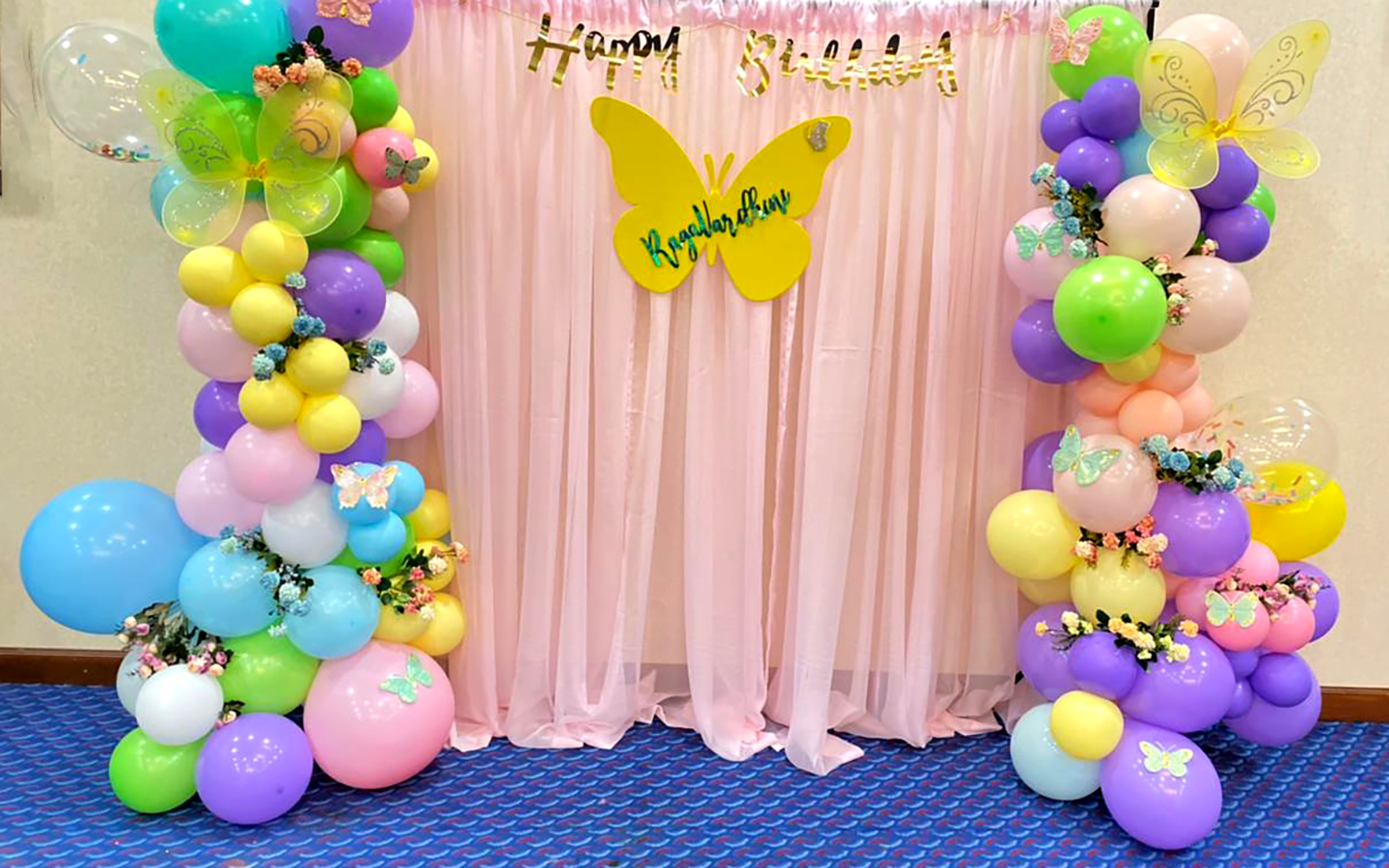 - Artificial Flowers & Butterflies On The Balloon Arch
