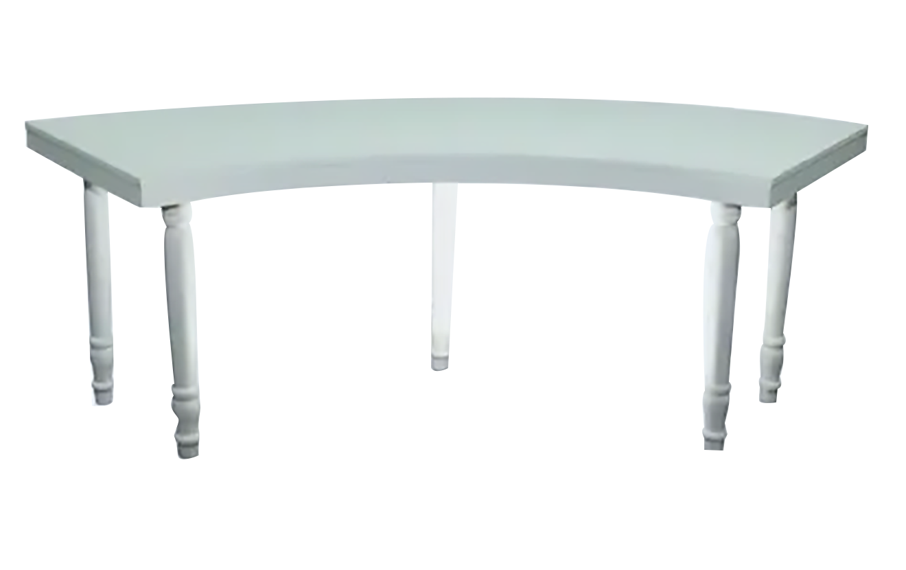 The Qamar Pie Table – White is available for rent in Dubai, Abu Dhabi and the UAE. This elegant piece of furniture is perfect for gala dinners, weddings, conferences and cabaret set up. Pair with the Dior Dining Chair for the perfect set up. Contact us now to order the Qamar Pie Table – White or for any other event furniture need.