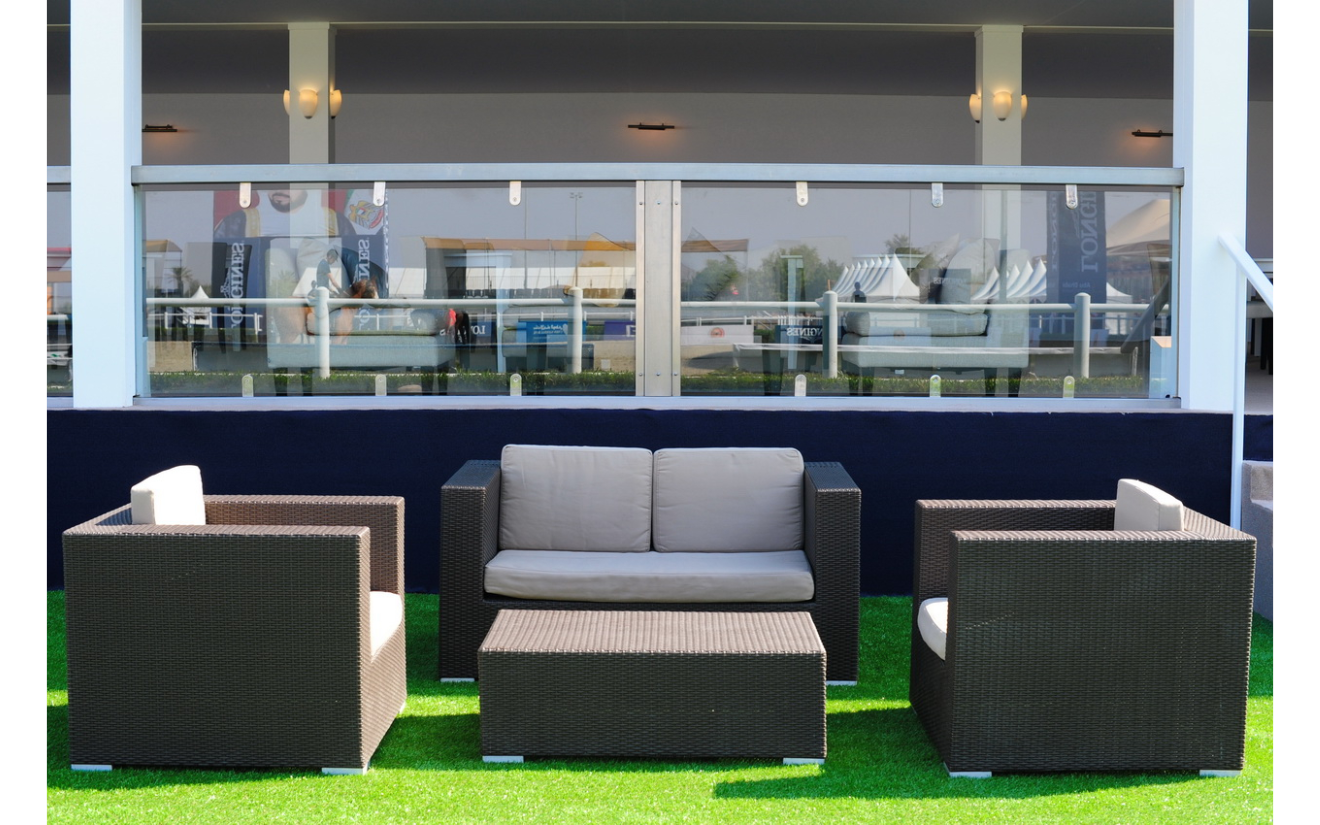 At Hafla, you can rent Richmond Outdoor Seating. One Richmond Sofa, two Richmond Armchairs, and one Richmond Coffee Table make up this outdoor seating. Rattan Single and Double Seat Sofas are available, as well as a Rattan Coffee Table. This sofa set is great for use at Galas, Dinners, Corporate Parties, Weddings, and Events.