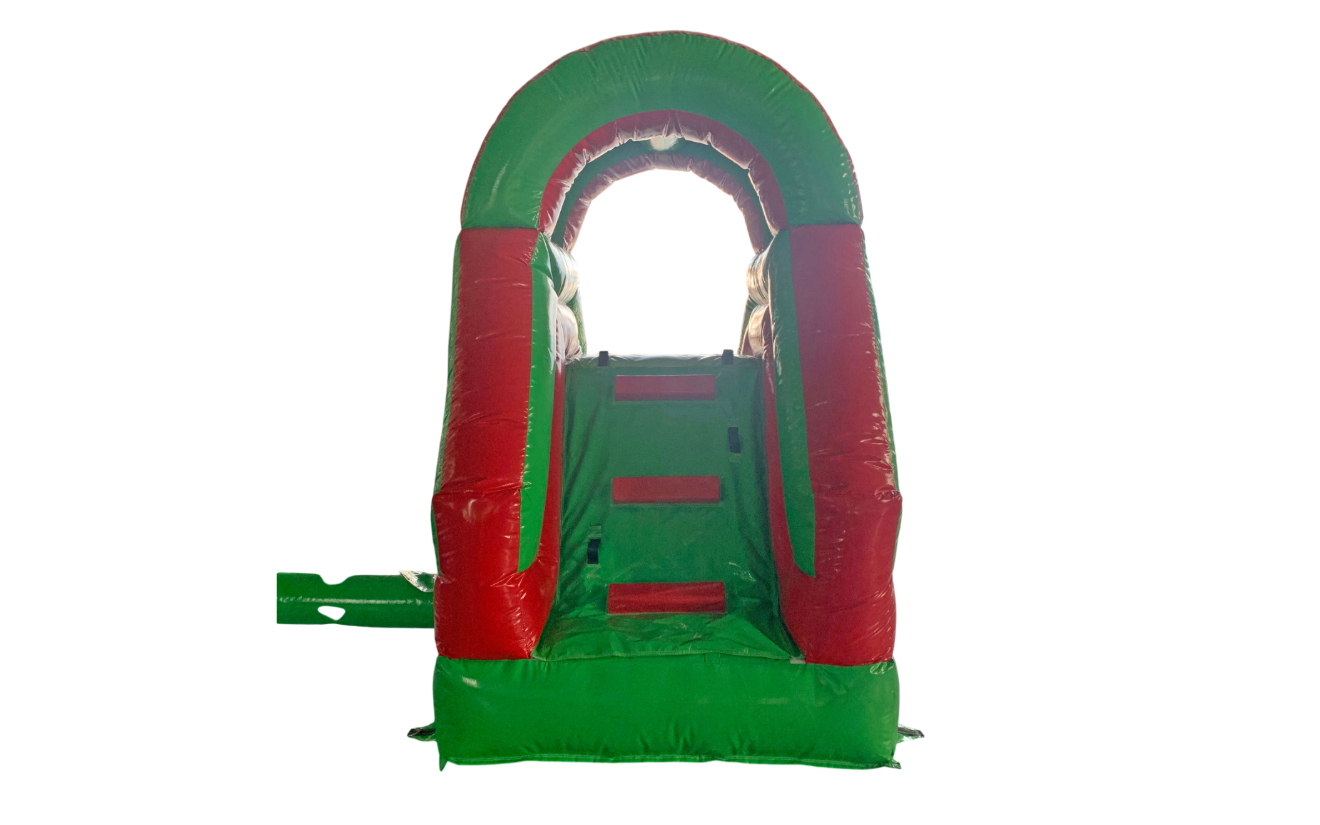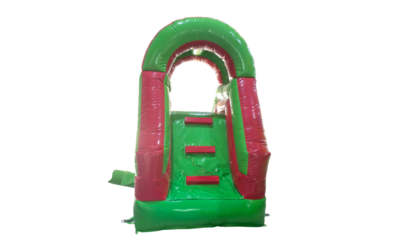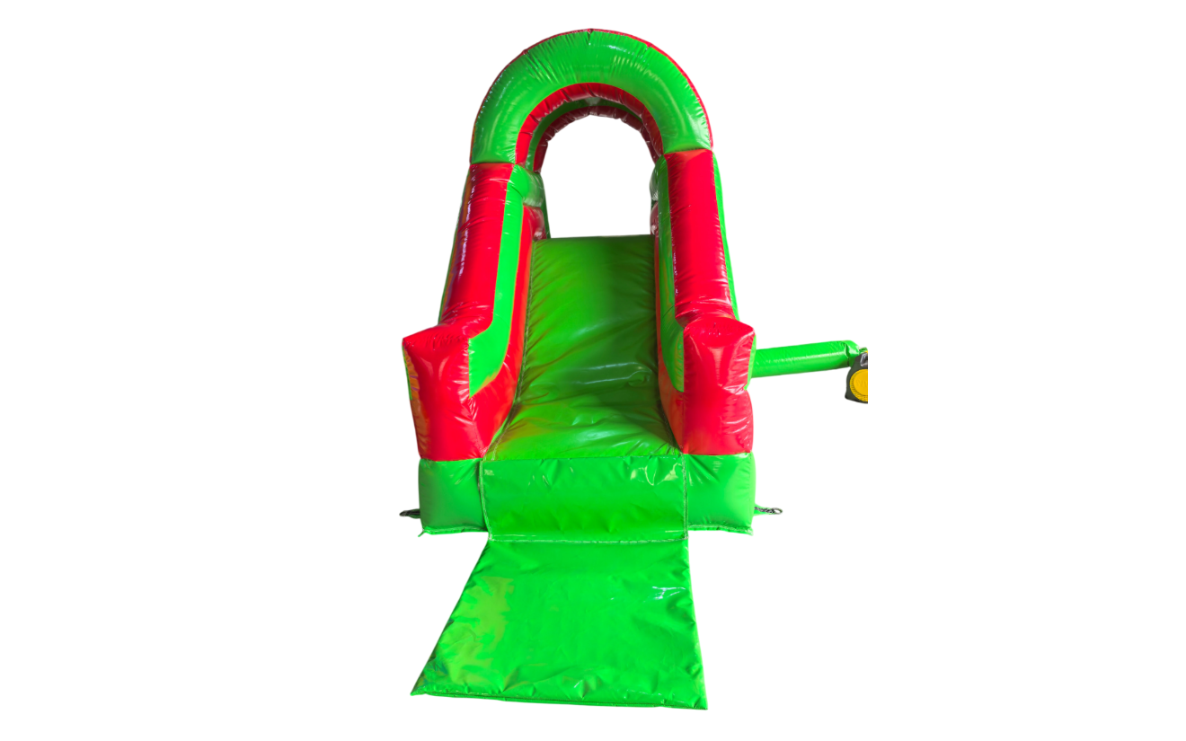 Compact and colorful inflatable slide designed for poolside fun. Ideal for smaller events or limited space setups, this slide features a bright red and green arch design and offers a smooth and safe splash landing. Perfect for water parties and kids’ entertainment.