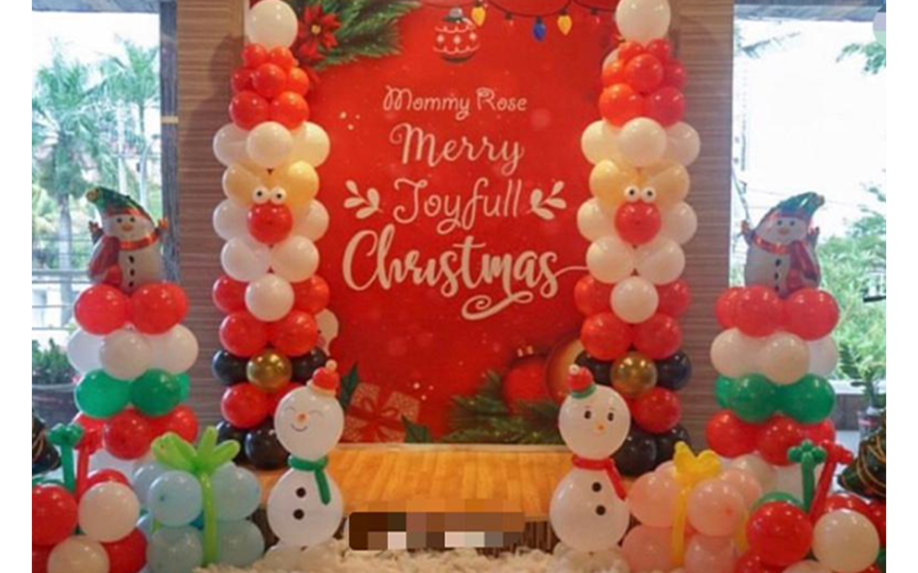 - 2m x 2m Christmas theme backdrop with balloon garland