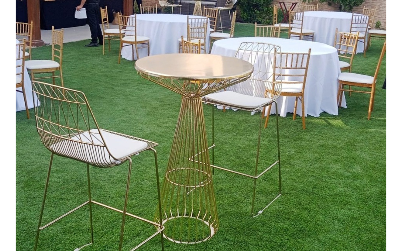 Stella Bar Chair Gold Plated Arrow Steel Wire Outdoor Bar Chairs for Exhibitions, Event Set-up, Indoor and Outdoor Set-up, Cocktail Parties, and Rental!