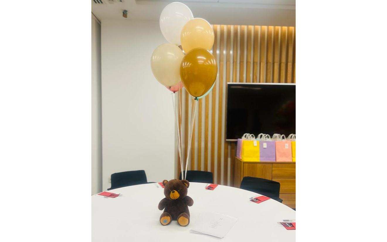 - 4 x Small teddy bear centerpieces with helium balloon bunches