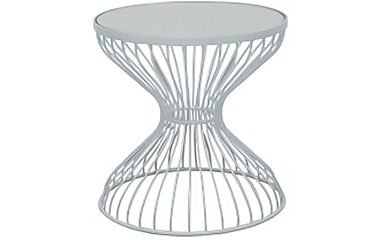 Rent a white coffee table for a range of event spaces. This coffee table comes with a glass top along with vertical bars shaped together to support the base.