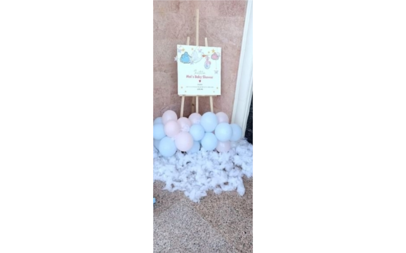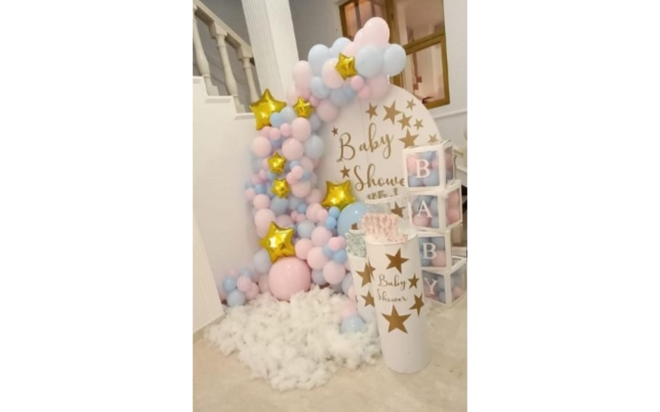 - 1.8m x 1.8m round white backdrop with baby shower and star stickers