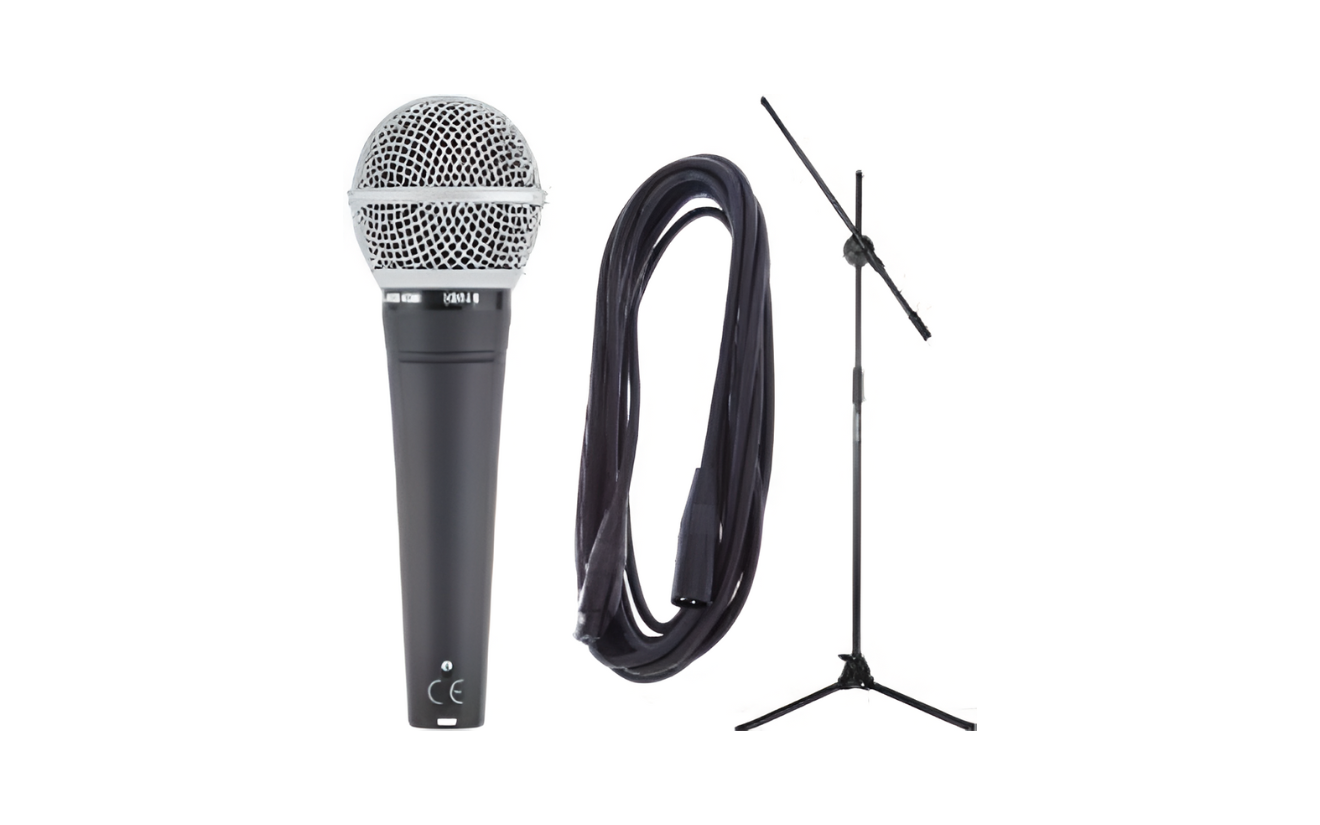 A reliable wired microphone with an adjustable stand, perfect for speeches, performances, karaoke, and professional events. Delivers clear and crisp sound with stable connectivity.